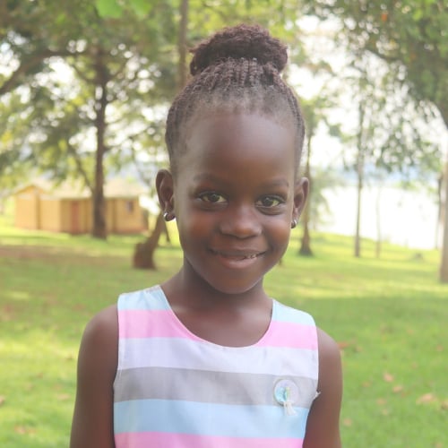 BV07086 Treasure lives in Bethany Village with her mother. She is in Primary 1 in school, and her favorite subject is math. Treasure's favorite thing to do is dance.